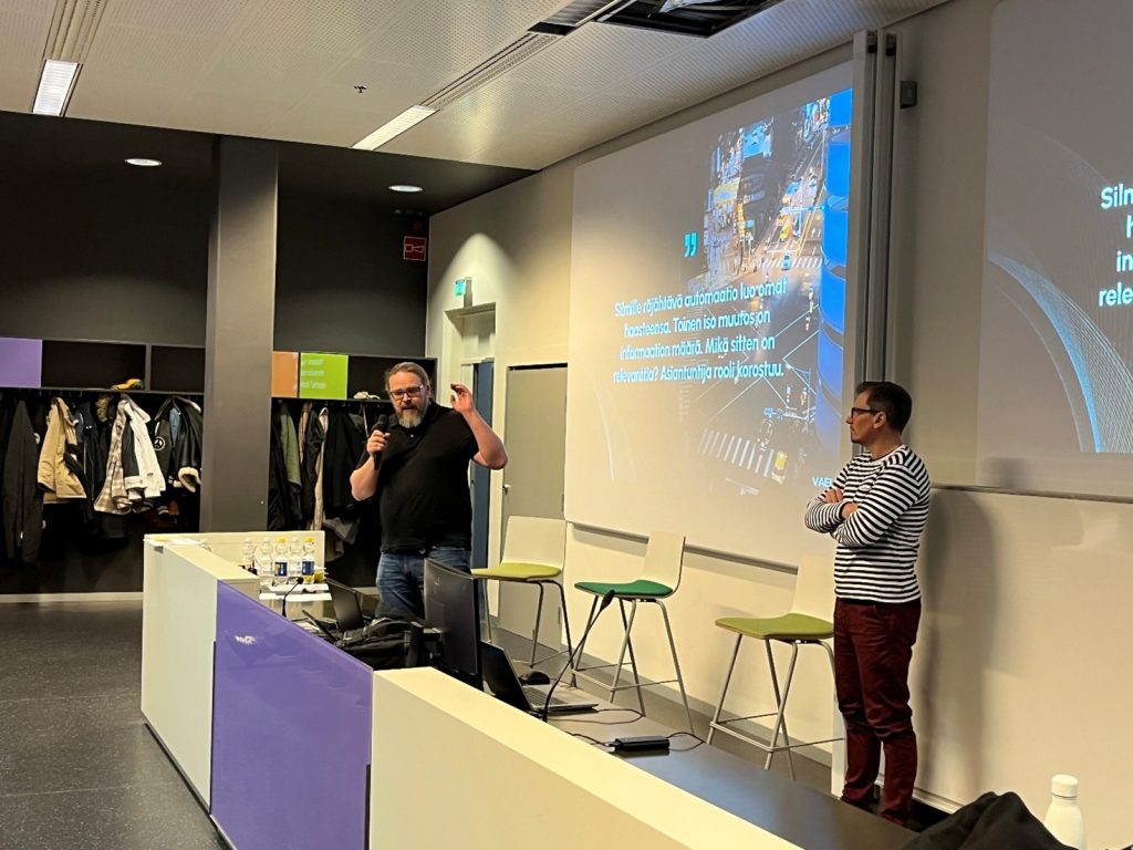 Toisessa keynote-puheenvuorossa Vaelion Oy:n Vesa Leppänen ja Lasse Riitesuo pohtivat, miten data ja tekoäly voivat tukea modernia B2B-myyntiä. He nostivat erityisesti esiin sen, miten tärkeää on kiinnittää huomiota käytetyn datan ja lähdeaineiston luotettavuuteen ja ajantasaisuuteen.