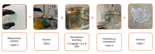 4.4.3 PVB-kalvon ja lasin laboratoriomittakaavan erotteluprosessi